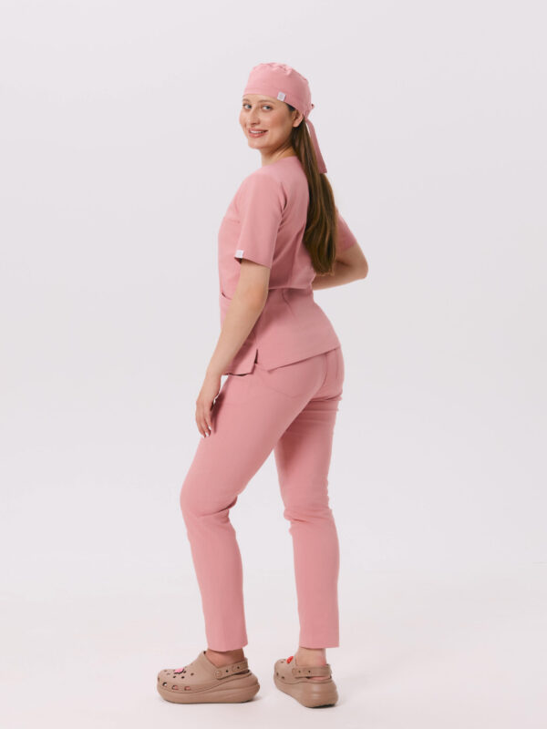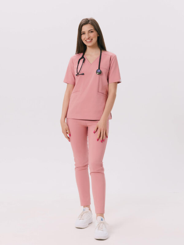 Spodnie medyczne damskie SCRUBS PROSTE w odcieniu Pink Peach. Prosty krój, funkcjonalne kieszenie i wygodna tkanina zapewniają elegancję oraz komfort noszenia.