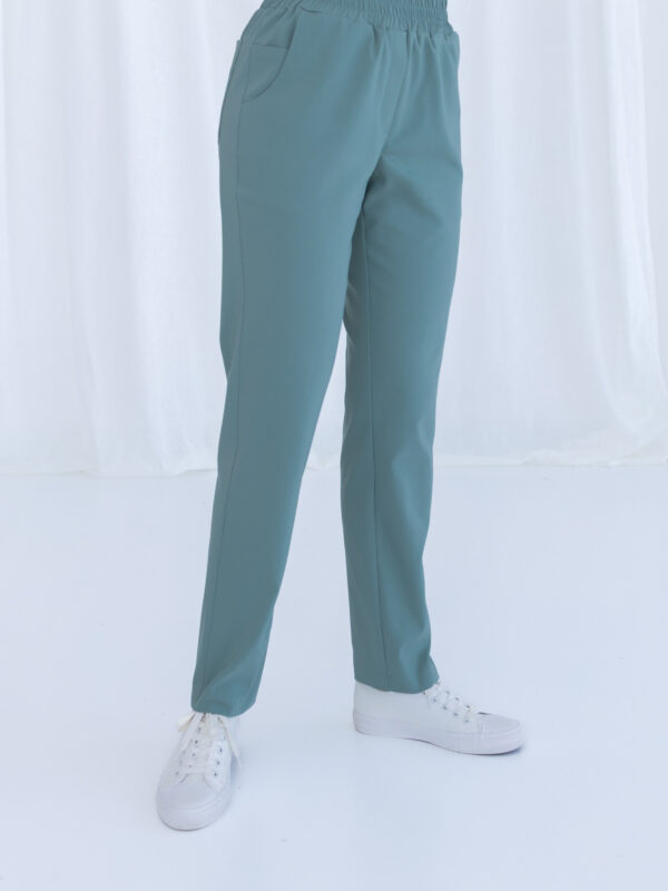 Spodnie medyczne damskie SCRUBS PROSTE łączą elegancki wygląd z wygodą. Miękka bawełna z nylonem i elastanem zapewnia komfort i pełną swobodę ruchów.