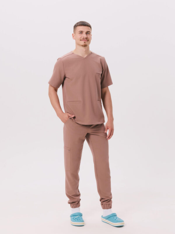 Spodnie medyczne męskie SCRUBS JOGGER BASIC w kolorze chocolate. Wygodne, przewiewne i elastyczne, doskonałe do pracy w wymagających warunkach.