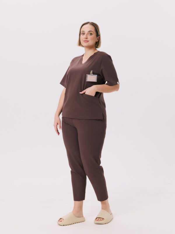 Bluzka medyczna damska Scrubs Basic Chocolate – komfortowy fason, elastyczny materiał i funkcjonalne kieszenie. Idealna do pracy, przewiewna i stylowa.