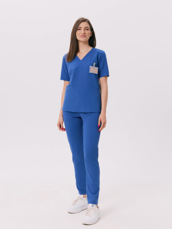 Bluzka medyczna damska Scrubs Basic Blue Jeans – klasyczny krój, wygodny materiał i funkcjonalne kieszenie. Idealna dla profesjonalistek ceniących komfort i styl.