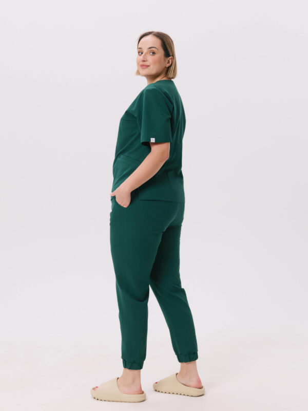 Spodnie medyczne damskie Scrubs Jogger Basic Bottle Green – elastyczne, wygodne i stylowe. Doskonałe dla profesjonalistek ceniących komfort i funkcjonalność.