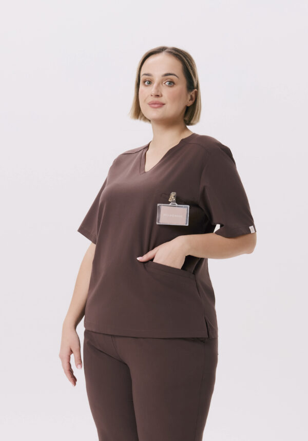 BLUZKA MEDYCZNA DAMSKA – SCRUBS – BASIC – CHOCOLATE