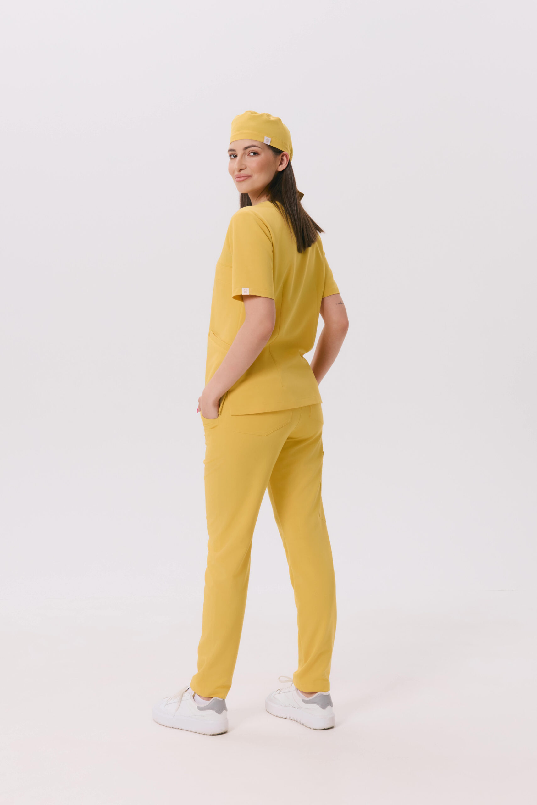 Bluzka medyczna damska Scrubs Basic w odcieniu Honey Yellow łączy funkcjonalność z wyjątkowym stylem. Jej staranne wykonanie i przemyślany krój zapewniają komfort noszenia przez cały dzień pracy.