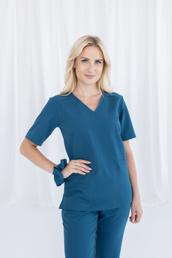 BLUZKA MEDYCZNA DAMSKA – SCRUBS – BASIC – MORSKI