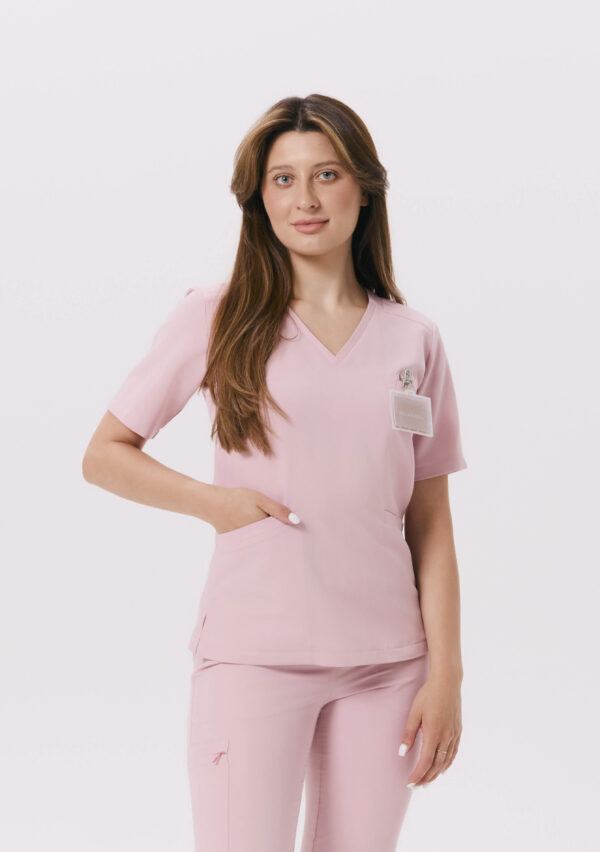 BLUZKA MEDYCZNA DAMSKA – SCRUBS – BASIC -PASTEL PINK