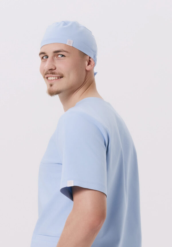 Czepek medyczny męski PREMIUM w kolorze baby blue. Wygodny, lekki i przewiewny, idealny do pracy w placówkach medycznych.