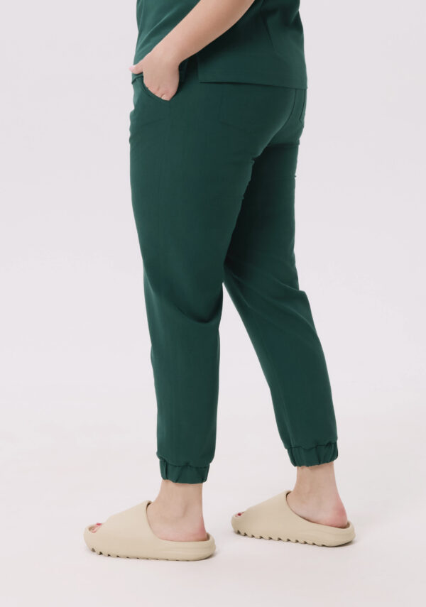 Spodnie medyczne damskie Scrubs Jogger Basic Bottle Green – elastyczne, wygodne i stylowe. Doskonałe dla profesjonalistek ceniących komfort i funkcjonalność.