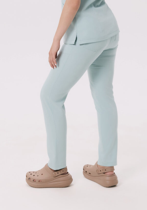 Spodnie medyczne damskie Scrubs Proste Basic Light Mint – klasyczny krój, prosta nogawka i wygodny pas z elastyczną gumą. Eleganckie, funkcjonalne i komfortowe na cały dzień.
